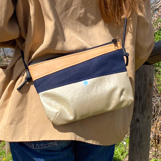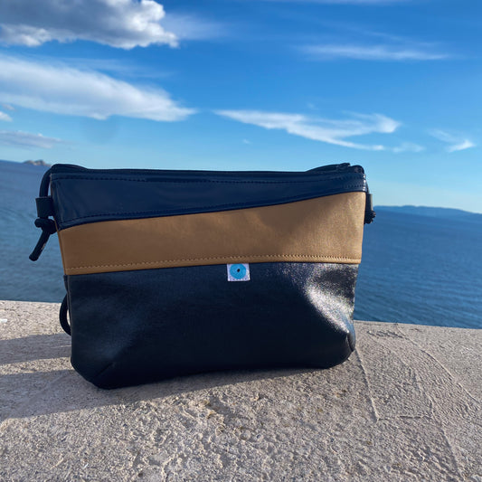 In offertaMINI PIANOSA BAG biscotto/ navy /oro lamé
