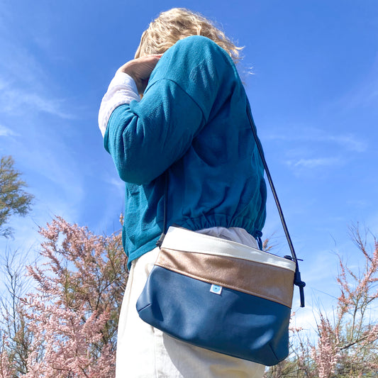 MINI PIANOSA BAG blu notte laméI biscotto I zaffiro laccato