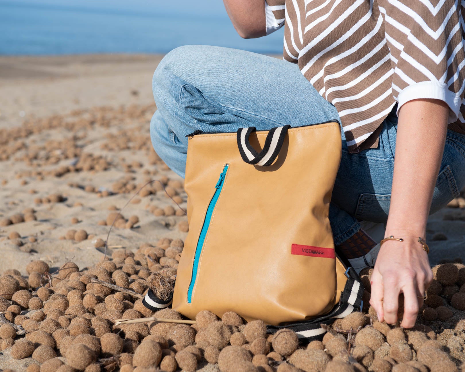 Lo Zaino TETI riaffiora dal mare con eleganza e dinamicità. Come la mitologica figlia di Oceano che da vita ad Achille, nasce da VISTAMAREBAGS un altro zaino anche da uomo. In veganpelle di media grandezza, sportivo nel suo look e robusto per una sicura longevità, lo zaino TETI in veganpelle di alta qualità è disponibile in monocolore a scelta ed è munito di extra tasca frontale con zip colorato per un comodo utilizzo anche in orizzontale. Unisex, veste sia donne che uomini. Con chiusura a cerniera, all’interno del compartimento grande si trova una tasca aperta per trovare facilmente cellulare o chiavi. Lacci regolabili e manico per portare comodamente il tuo zaino TETI a mano. La leggerezza insieme alla dinamicità e resistenza fanno dello zaino Teti un ottimo compagno per il tuo trekking e lunghe passeggiate senza lasciare a casa nulla di ciò che potrebbe servirti.