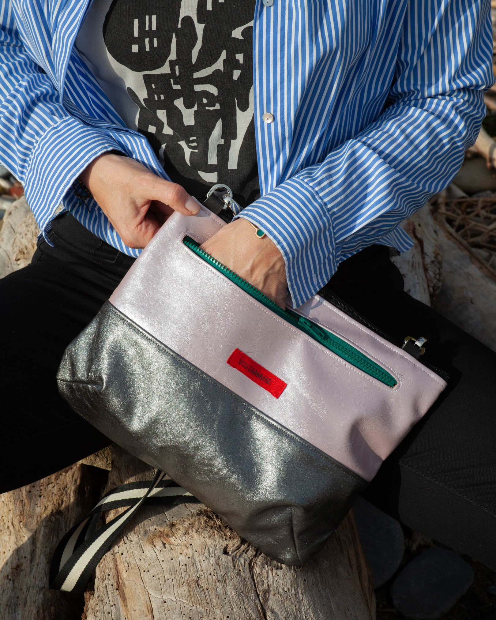 La Pianosa Big è una borsa media e allegra. Con i suoi mille colori dal arcobaleno completa ogni look. La designer crea un mix di veganpelli in un stupendo design, lineare e pulito che colpisce. Chi la possede l’adora! Ovviamente non trascuriamo la praticità e qualità. Portabile come borsa a tracolla, il suo peso leggero ti premette di tenerla sempre vicino con te, per le cose più custodite che non vuoi lasciare mai come portafoglio, cellulare, occhiali e chiavi. Nella versione BIG abbiamo pensato a un modello più grande della Pianosa Mini ! Con chiusura a cerniera si apre e chiude velocemente anche con una mano. Con la racolla regolabile la puoi portare sia come borsa da spalla che da come borsa da tracolla. Ottimo accompagnatore per il tuo prossimo viaggio. Anche la Pianosa BIG prende poco spazio nella tua valigia! Di giorno si presta con un paio di Jeans blu e T-Shirt, la sera completa tuo outfit! La versione Big hatasca extra con chiusura a cerniera dietro.