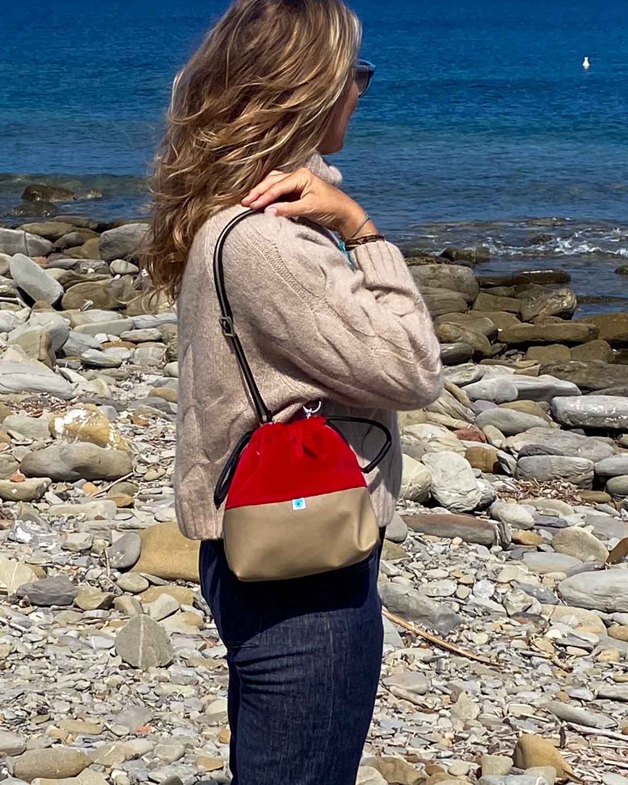 La Sacca Capraia si distingue per una capienza superiore rispetto alla versione Baby Capraia, mantenendo comunque la sua praticità e leggerezza. Realizzata in tessuto eco-sostenibile e vegan-pelle, è una borsa di media misura che offre un ampio spazio per contenere comodamente portafoglio, occhiali, chiavi, cellulare e altro. La CAPRAIA BAG è dotata di un pratico sistema di apertura rapida con laccio, che garantisce una facile accessibilità. Durante il giorno, puoi indossarla a tracolla per un look casual, mentre di sera, per un tocco più elegante, la trasformi in una raffinata borsa da polso.