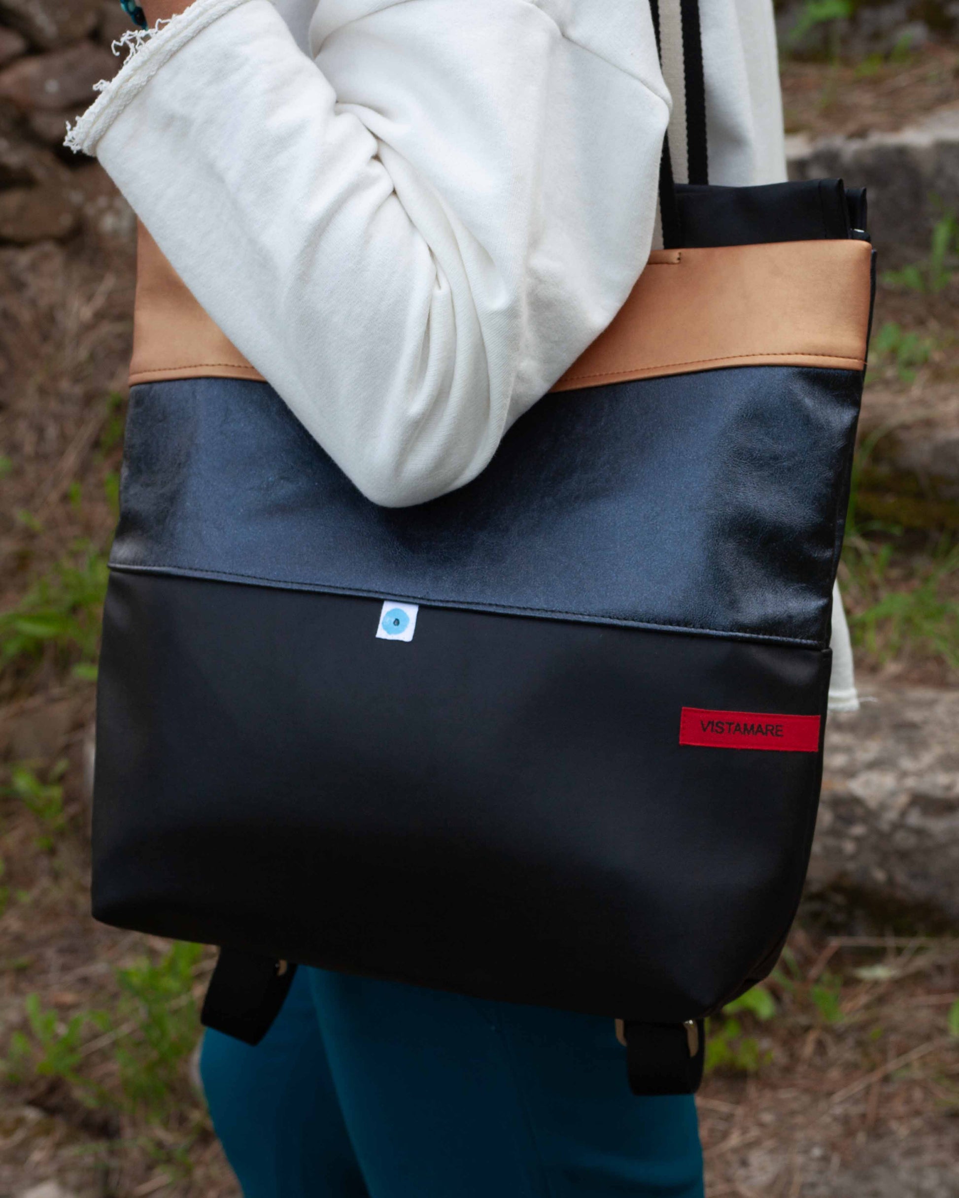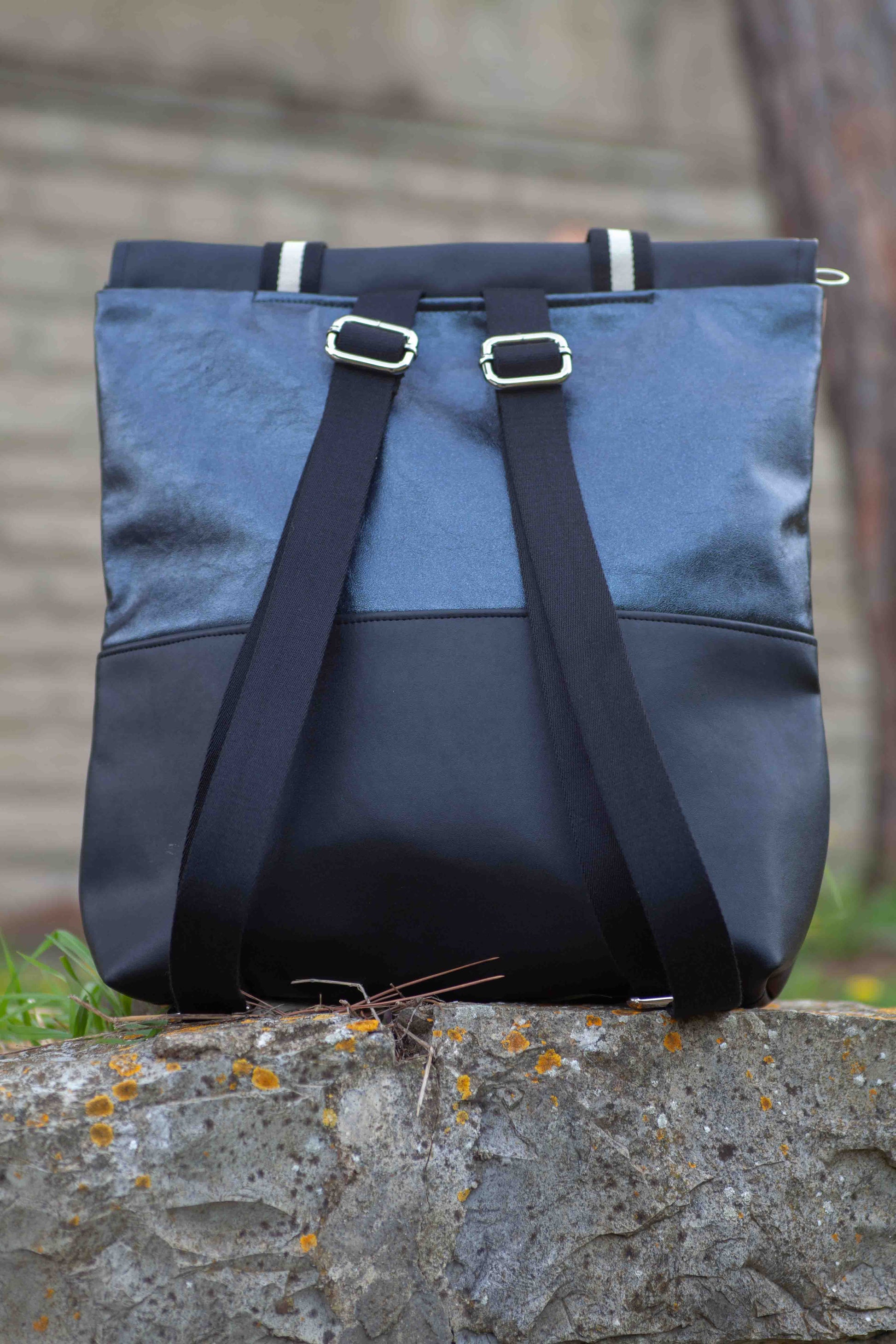 Uno zaino multifunzionale, per la donna che non vuole rinunciare a uno look moderno e sportivo! Ideale per il lavoro con multi tasche al interno così come per la vita di tutti i giorni in città. Puoi portare il nostro classico come zaino regolabile oppure come borsa su una spalla. La sua natura sportiva e casual e versatile, lo rende il perfetto compagno anche in viaggio. La combinazione dei colori e la scelta del materiale – veganpelle - lo rende l'accessorio perfetto per la donna che ricerca la cura dei dettagli.