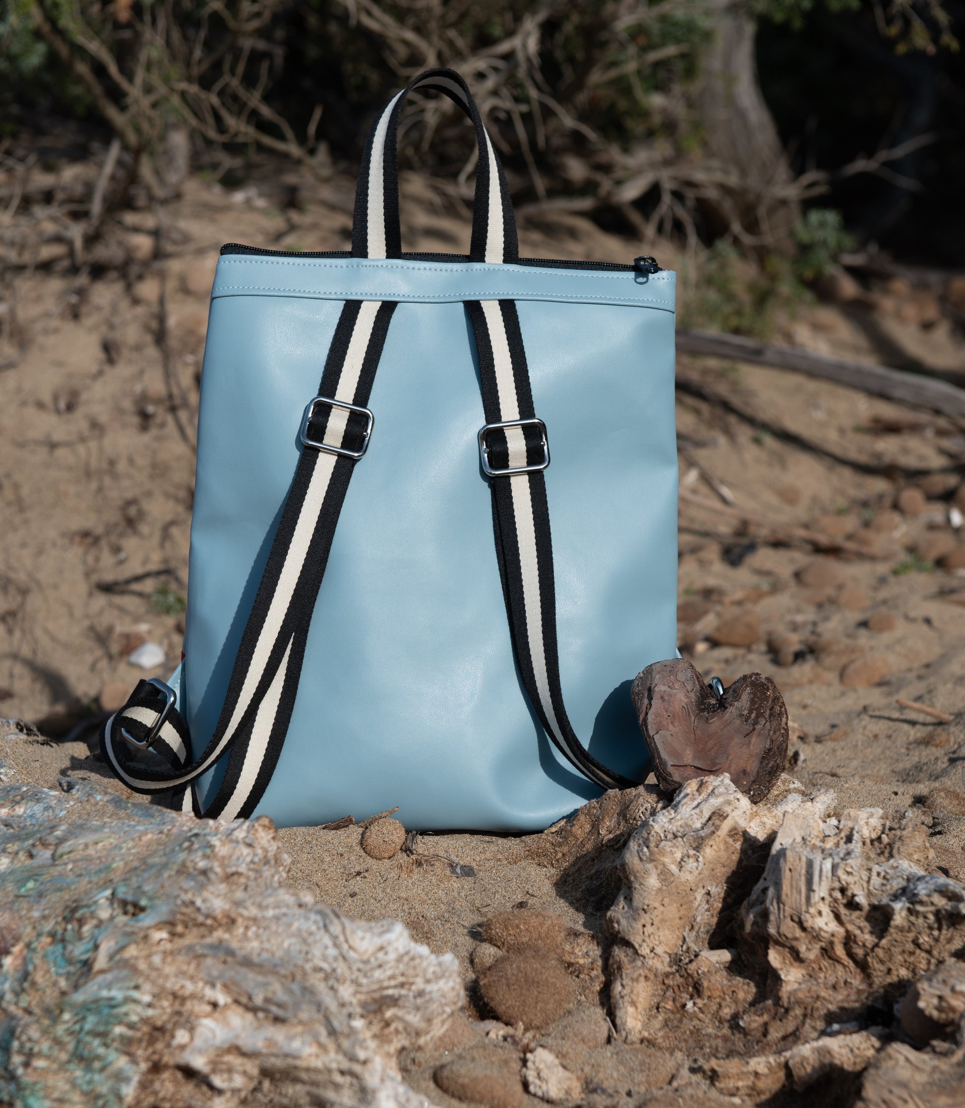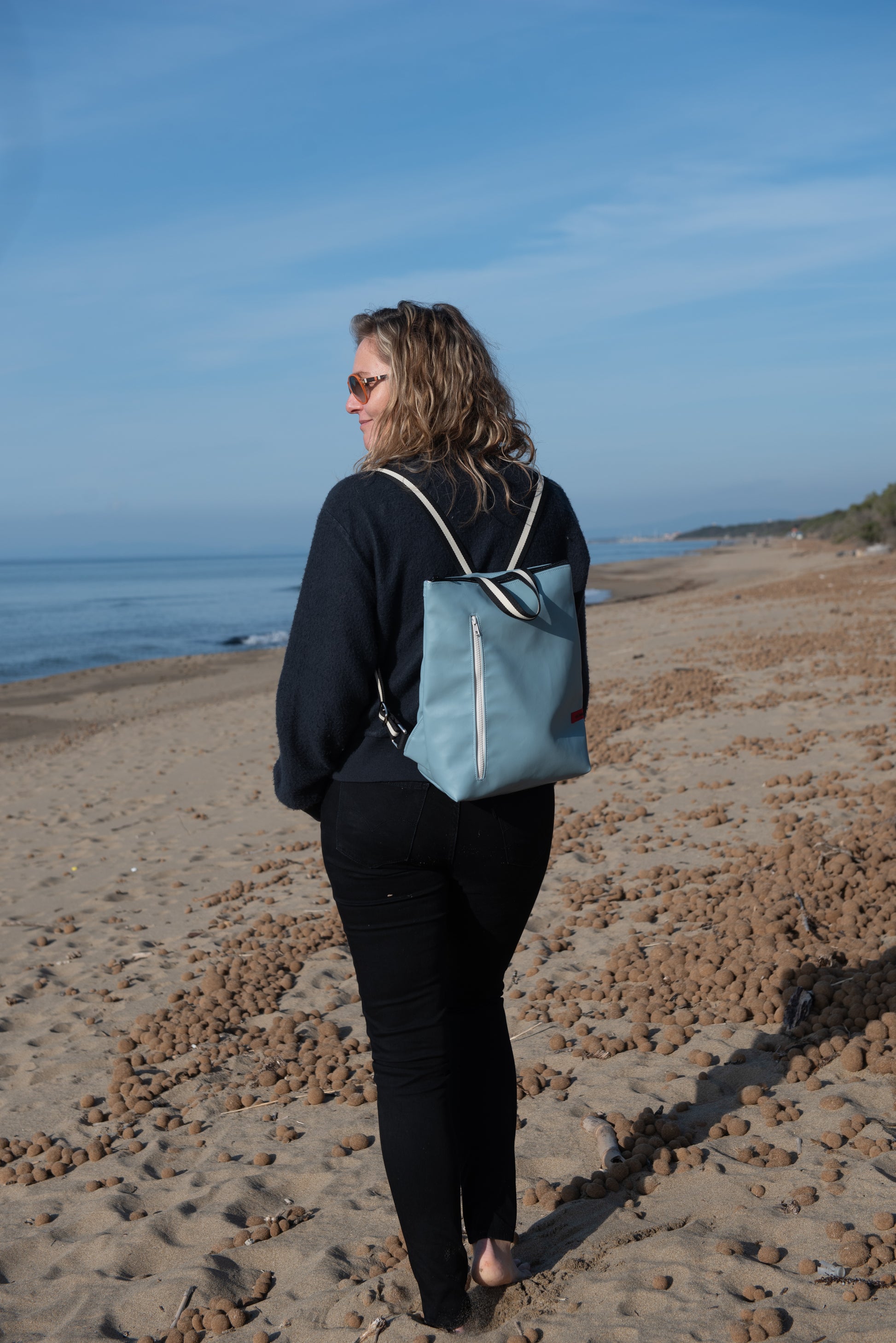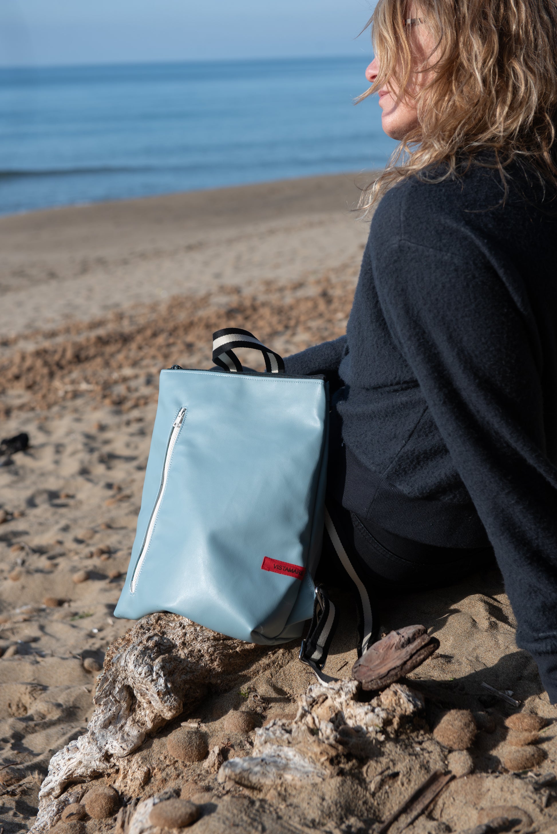 Lo Zaino TETI riaffiora dal mare con eleganza e dinamicità. Come la mitologica figlia di Oceano che da vita ad Achille, nasce da VISTAMAREBAGS un altro zaino anche da uomo. In veganpelle di media grandezza, sportivo nel suo look e robusto per una sicura longevità, lo zaino TETI in veganpelle di alta qualità è disponibile in monocolore a scelta ed è munito di extra tasca frontale con zip colorato per un comodo utilizzo anche in orizzontale. Unisex, veste sia donne che uomini. Con chiusura a cerniera, all’interno del compartimento grande si trova una tasca aperta per trovare facilmente cellulare o chiavi. Lacci regolabili e manico per portare comodamente il tuo zaino TETI a mano. La leggerezza insieme alla dinamicità e resistenza fanno dello zaino Teti un ottimo compagno per il tuo trekking e lunghe passeggiate senza lasciare a casa nulla di ciò che potrebbe servirti.