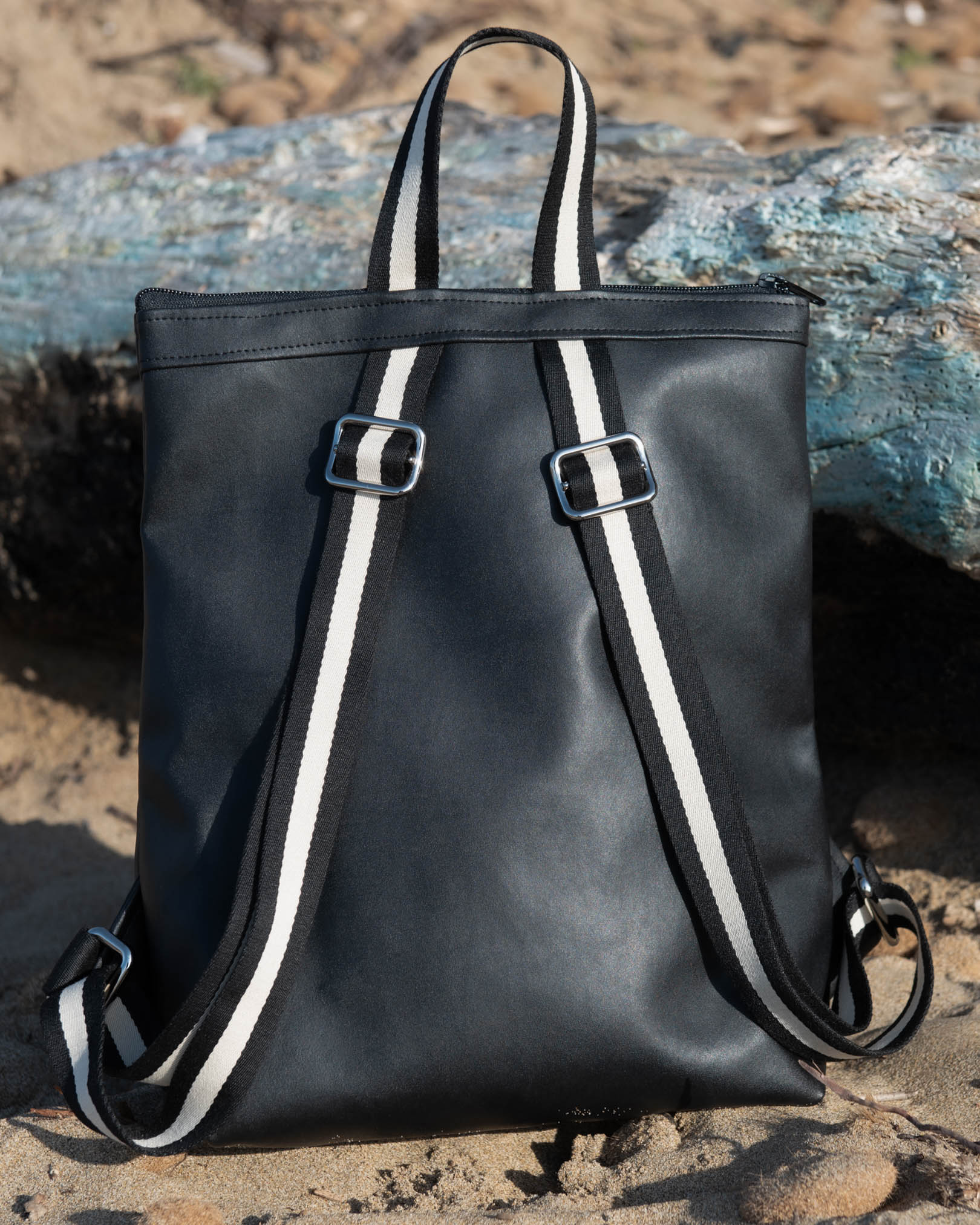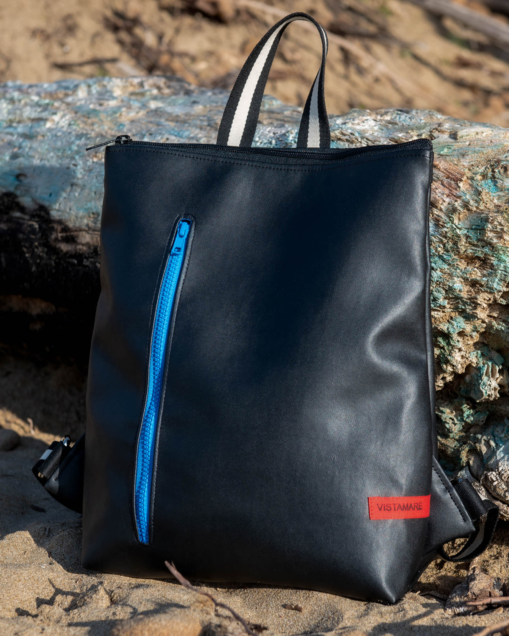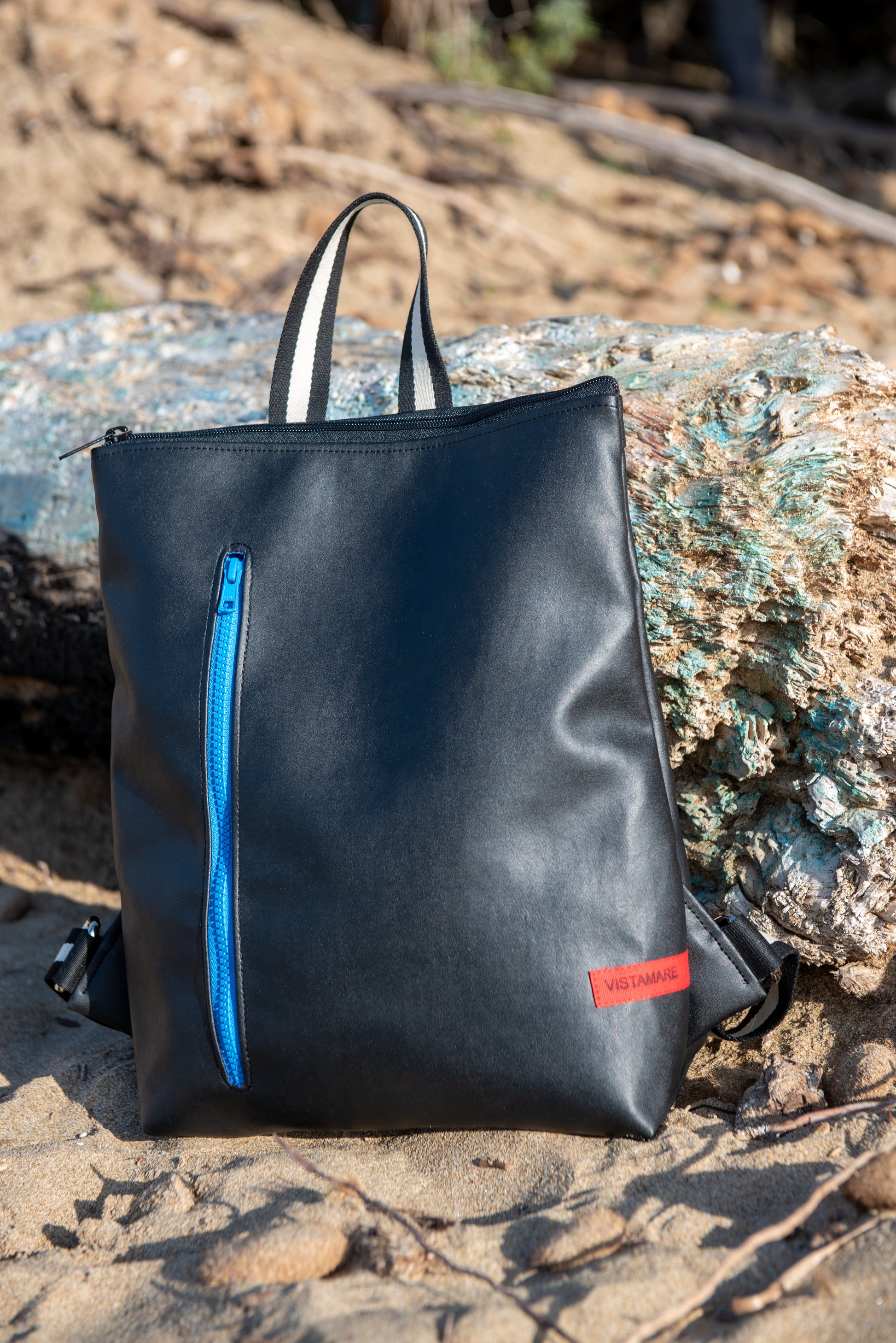 Lo Zaino TETI riaffiora dal mare con eleganza e dinamicità. Come la mitologica figlia di Oceano che da vita ad Achille, nasce da VISTAMAREBAGS un altro zaino anche da uomo. In veganpelle di media grandezza, sportivo nel suo look e robusto per una sicura longevità, lo zaino TETI in veganpelle di alta qualità è disponibile in monocolore a scelta ed è munito di extra tasca frontale con zip colorato per un comodo utilizzo anche in orizzontale. Unisex, veste sia donne che uomini. Con chiusura a cerniera, all’interno del compartimento grande si trova una tasca aperta per trovare facilmente cellulare o chiavi. Lacci regolabili e manico per portare comodamente il tuo zaino TETI a mano. La leggerezza insieme alla dinamicità e resistenza fanno dello zaino Teti un ottimo compagno per il tuo trekking e lunghe passeggiate senza lasciare a casa nulla di ciò che potrebbe servirti.