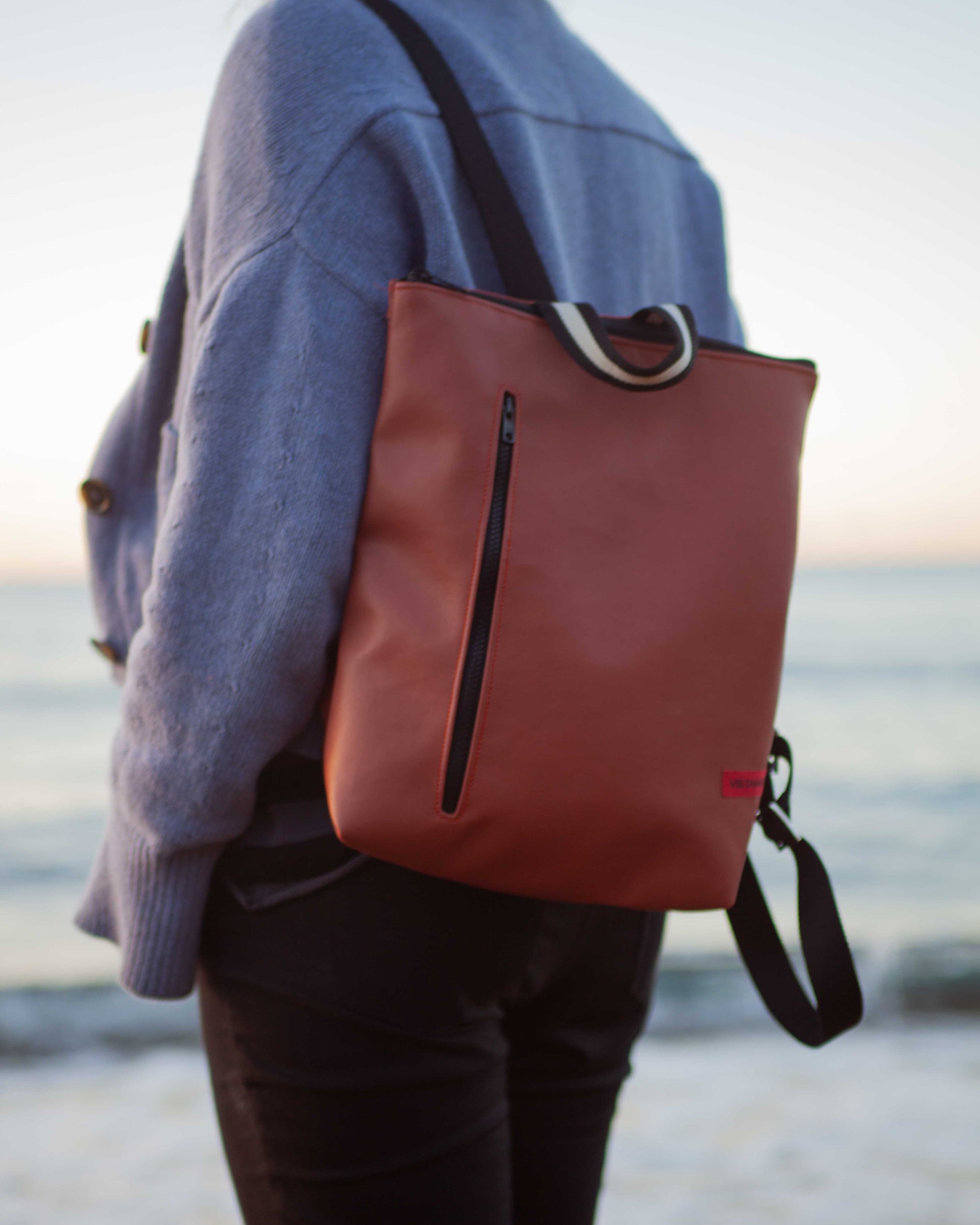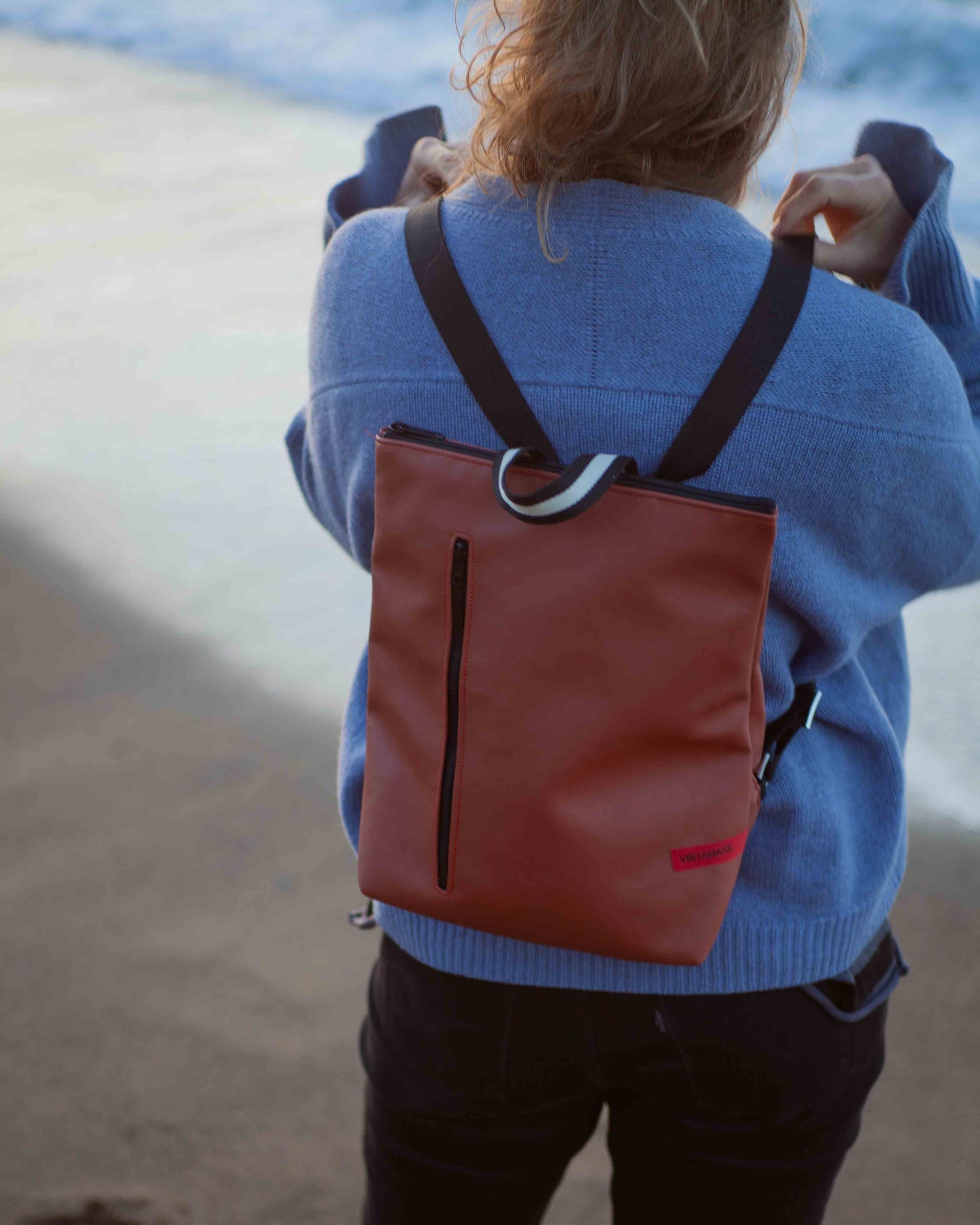 Lo Zaino TETI riaffiora dal mare con eleganza e dinamicità. Come la mitologica figlia di Oceano che da vita ad Achille, nasce da VISTAMAREBAGS un altro zaino anche da uomo. In veganpelle di media grandezza, sportivo nel suo look e robusto per una sicura longevità, lo zaino TETI in veganpelle di alta qualità è disponibile in monocolore a scelta ed è munito di extra tasca frontale con zip colorato per un comodo utilizzo anche in orizzontale. Unisex, veste sia donne che uomini. Con chiusura a cerniera, all’interno del compartimento grande si trova una tasca aperta per trovare facilmente cellulare o chiavi. Lacci regolabili e manico per portare comodamente il tuo zaino TETI a mano. La leggerezza insieme alla dinamicità e resistenza fanno dello zaino Teti un ottimo compagno per il tuo trekking e lunghe passeggiate senza lasciare a casa nulla di ciò che potrebbe servirti.